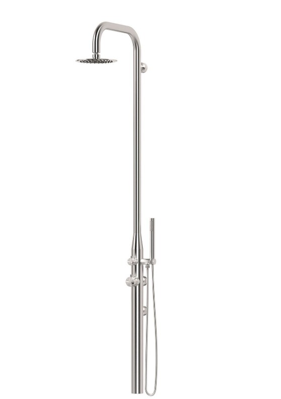 Echipat cu un robinet practic și un cap de duș generos, oferă un control precis al temperaturii și o experiență superioară de utilizare. Liniile curate și atenția la detalii evidențiază angajamentul de a valorifica spațiul în care este integrat, fie că este vorba despre o baie de acasă sau un colț de grădină.